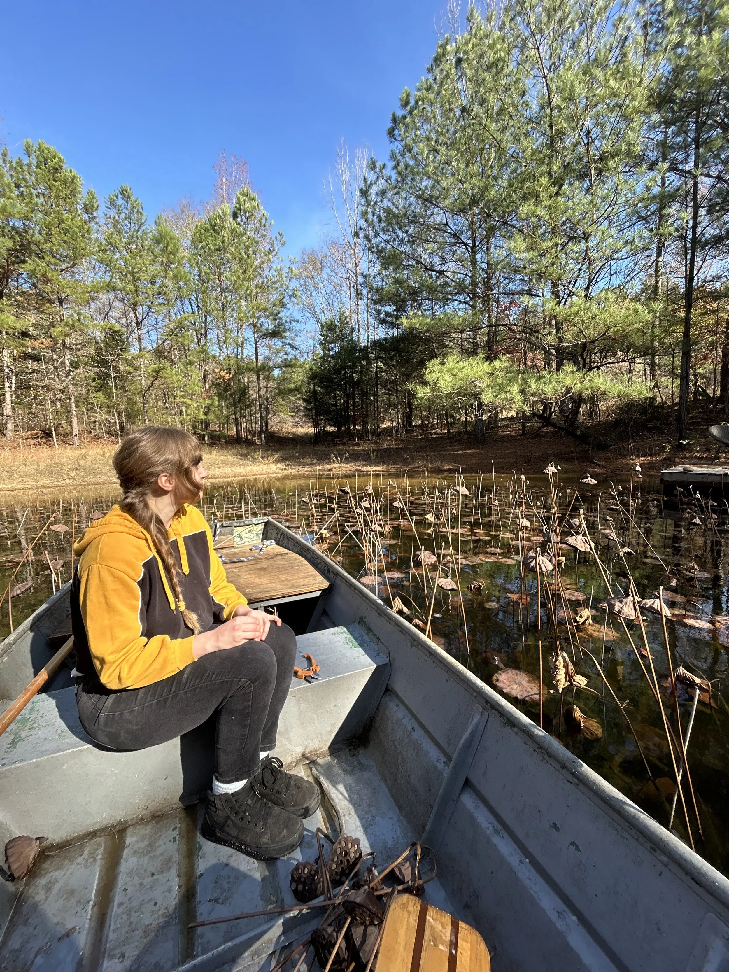 Jess and I paddled around the pond, collecting a bunch of dried lilies that I was able to use for Thanksgiving. They were beautiful.