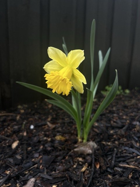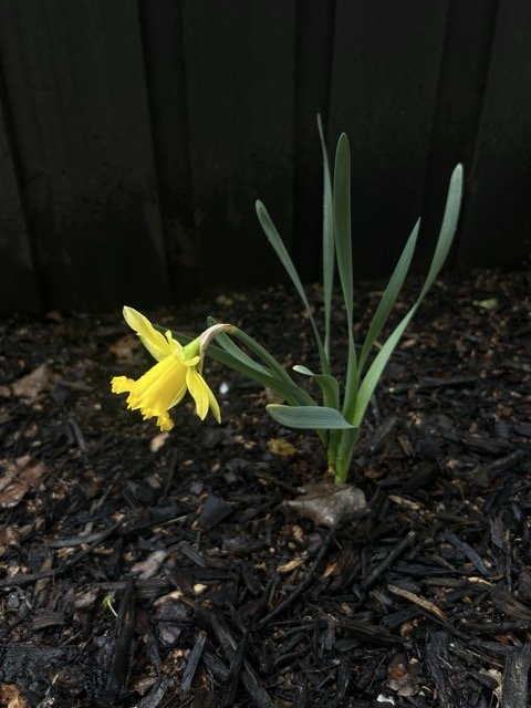 I also worked in the flower beds. I expanded the left side and added some flower bulbs. By the end of the month, I was seeing blooms.