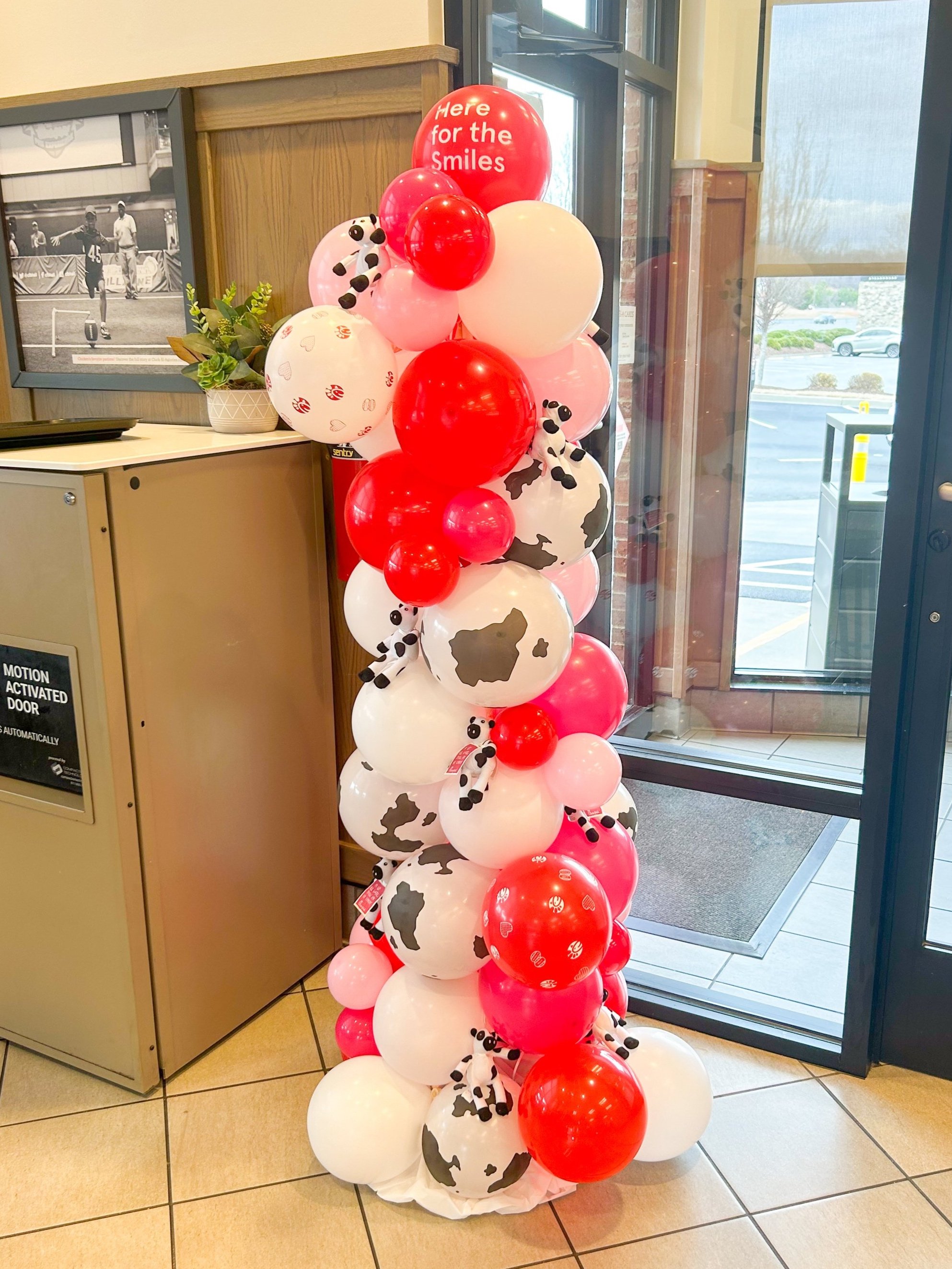 For February, we embraced the Valentine’s Day theme. We used white and red and included Chick-Fil-A’s custom balloons. We even sprinkled in some of their cows to top it off! It all turned out amazing and set the tone for a wonderful family night. Everyone loved the balloons, and the evening was unforgettable.