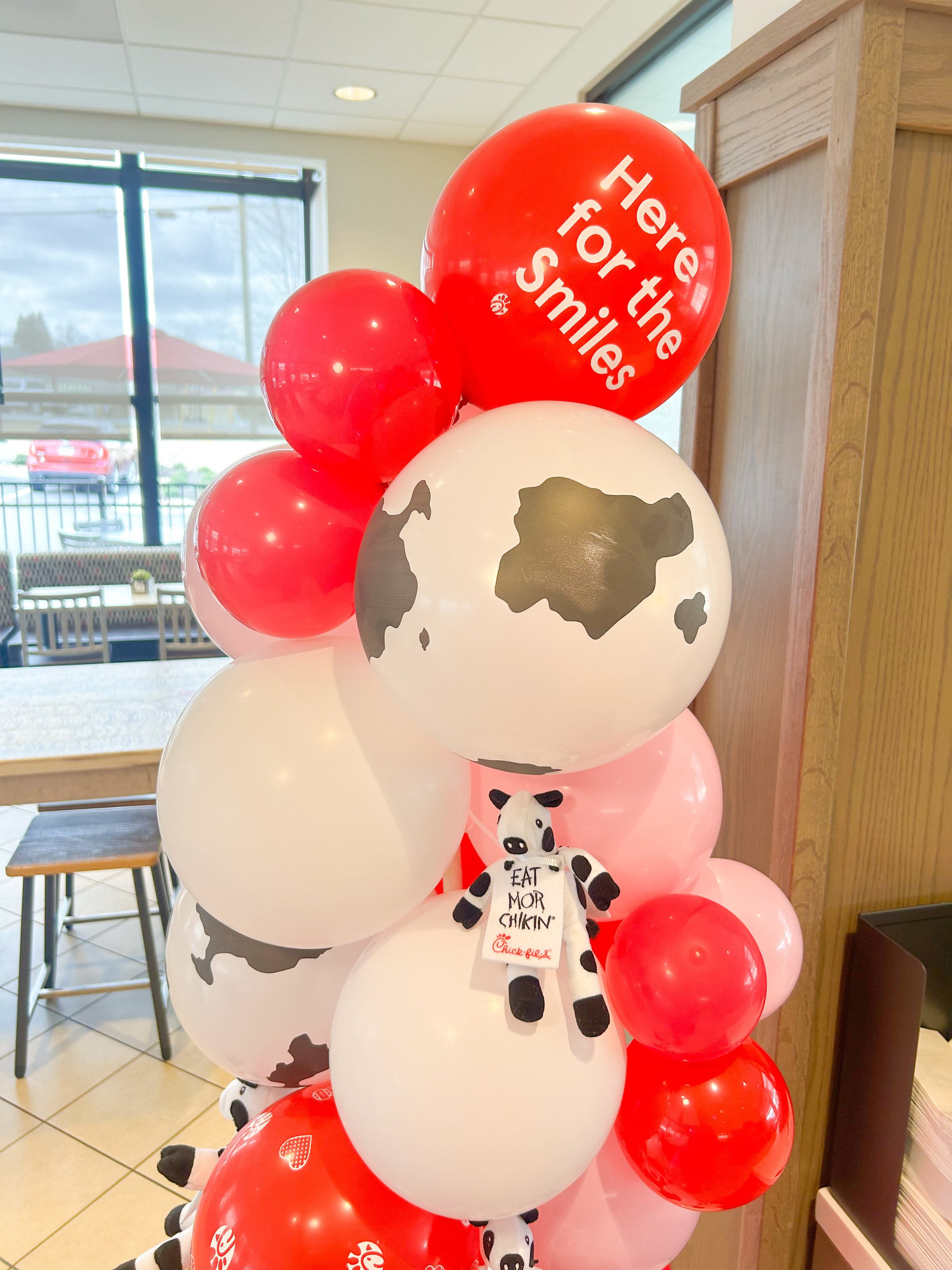 Every month, Chick-Fil-A hosts a family night at their Dahlonega and Dawsonville store. Families come for dinner, and the kids have some fun activities to do! They really make it special for them. To top it all off, we get to set the tone with our balloons. We’re honored to be a part of such a special event.
