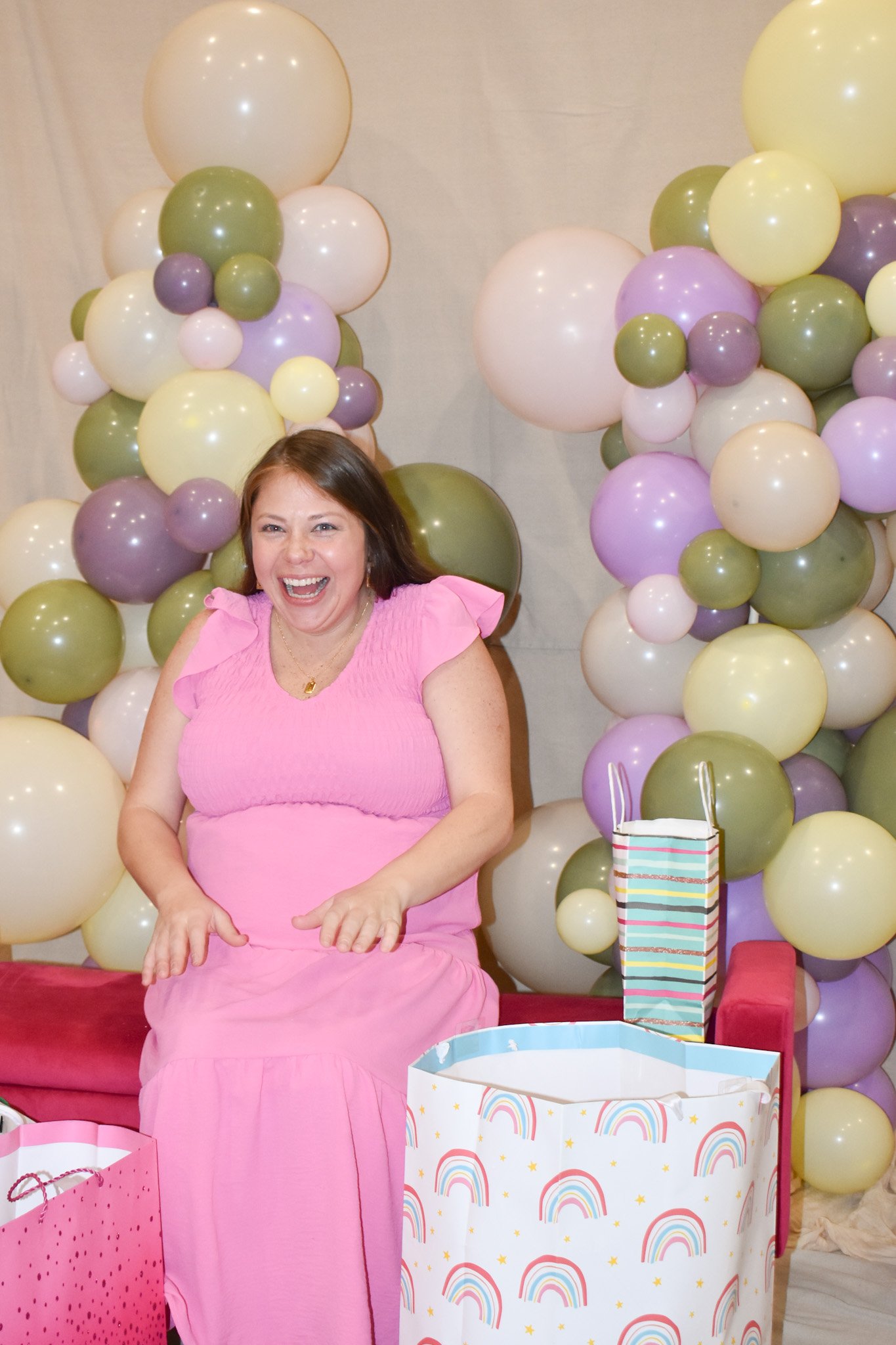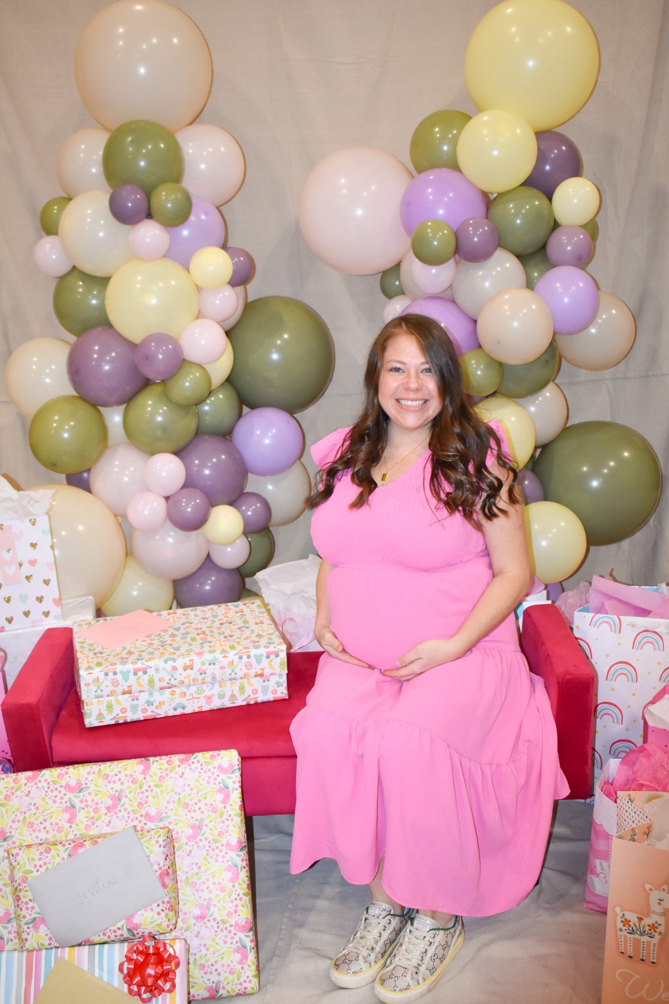 To finish off such an amazing event, Jessica opened all her gifts. To create the perfect scene, we utilized our Canvas Backdrop with a Pink Bench. To top it off, we added two Ultra Balloon Towers. Jessica was incredibly grateful for everyone and everything she received. She genuinely showed so much excitement. It was heartwarming to see her joy. Everyone couldn’t stop talking about how fun and uplifting the event was.